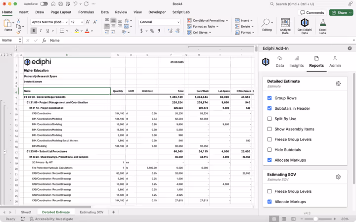 Ultimate flexibility—only the columns you need. No extra tabs, no hidden fields. Just a clean, audit-ready cost story.